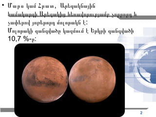 • Մարսը երկրայինխմբի մոլորակ է