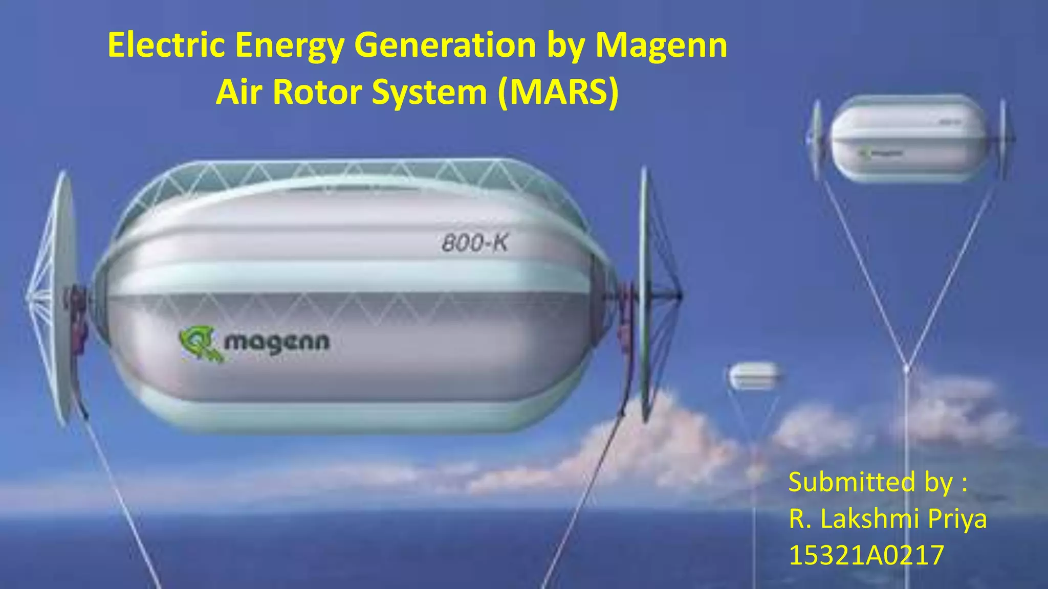 The Magenn Air Rotor System (MARS) utilizes the Magnus effect to generate renewable electrical energy from wind using a tethered, helium-filled balloon. It provides a cost-effective and environmentally friendly power solution by transferring energy to batteries or the power grid. Despite its promise in reducing dependency on fossil fuels, MARS faces limitations such as high initial costs and proximity restrictions to airports.