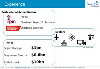 The document discusses how advanced data analytics will transform project controls. It hypothesizes that there are patterns in projects that could make some more prone to variance. With bias-free data pooling and analytics, projects could be delivered with more confidence, quicker and cheaper. An example is given of how analytics could have helped predict issues on the Crossrail project. The challenges of implementing advanced analytics are also discussed, such as how to manage bias in AI and whether project controllers should become data scientists. The document concludes that project controls is on the verge of significant disruption from emerging predictive and forensic analytics capabilities.