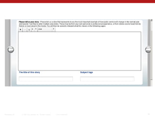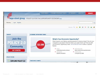The document summarizes the key discussions and outcomes of the 2010 Online Security Jam hosted by NATO and the European Union. Over 3,800 participants from 124 countries engaged in thematic conversations over 5 days to discuss the future of Western security policy. Recommendations from the event called for NATO to develop a civilian arm and the European Union to create its own intelligence agency. The document then outlines challenges facing policymaking and new approaches and tools that could help address these challenges through greater collaboration, transparency, participation and harnessing distributed knowledge.
