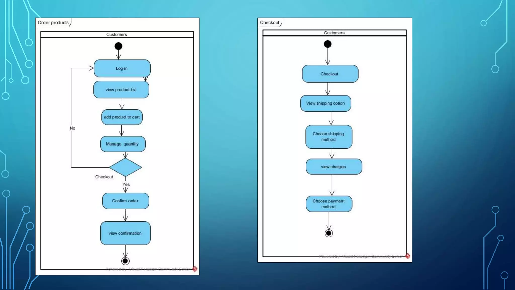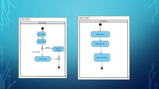 The document outlines the team members involved in the Marvel Digital Cameras online store project, detailing their roles and identifiers. It includes various diagrams such as use case, class, and activity diagrams that describe functionalities like viewing product details, managing products, and customer support.