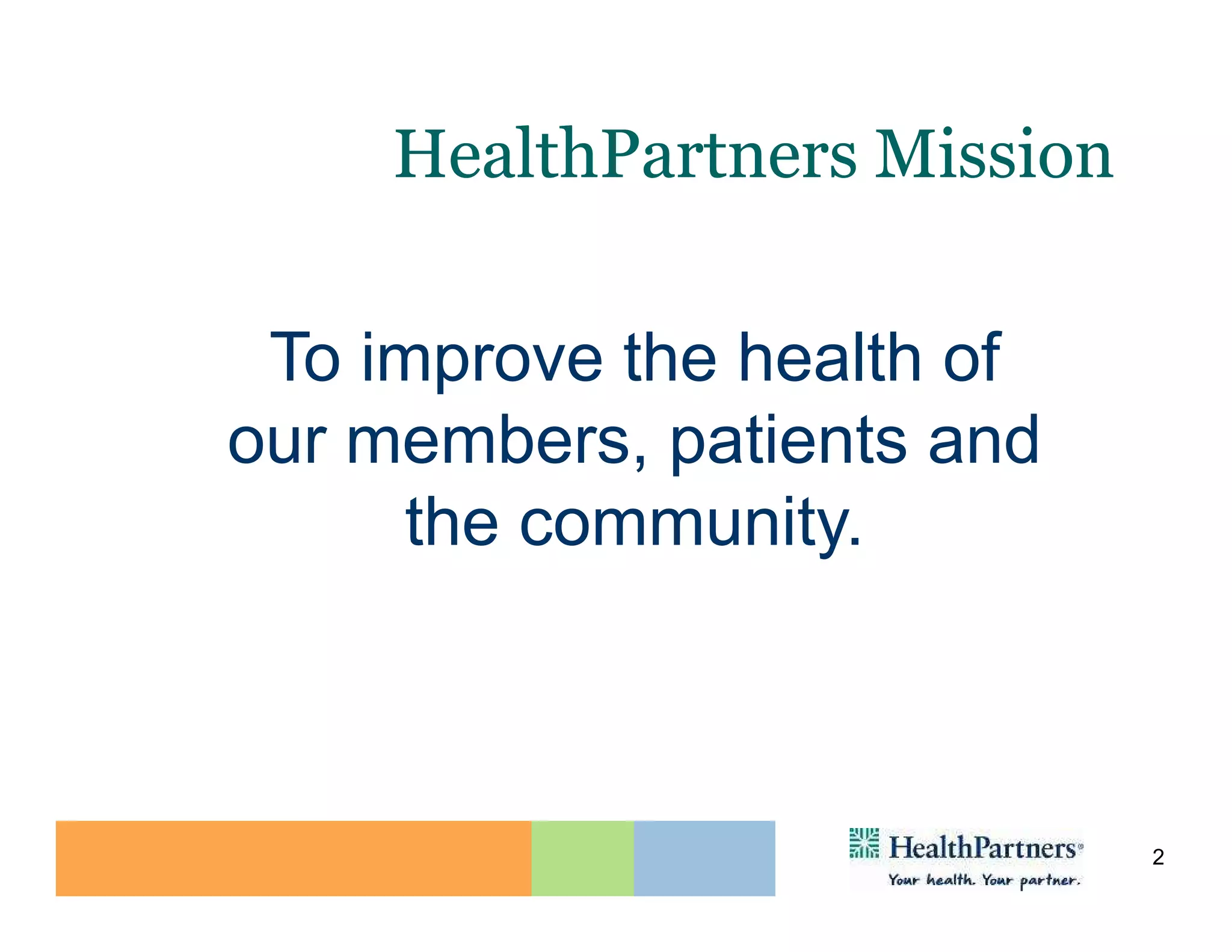 HealthPartners, a consumer-governed and not-for-profit organization, aims to improve the health of its members and the community through a focus on the triple aim of optimizing health, patient experience, and cost-effectiveness. The organization emphasizes coordinated care, healthy lifestyle support, and the use of technology to enhance healthcare delivery and affordability. HealthPartners advocates for real healthcare reform, including payment systems that prioritize value over service volume and active partnerships with consumers in health decisions.