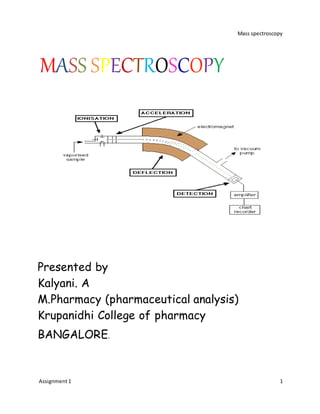 Mass spectrometry is a technique used to identify unknown compounds and determine molecular structure. It works by ionizing sample molecules and measuring their mass-to-charge ratios. The document discusses various components of a mass spectrometer including the inlet system, ionization sources, and mass analyzer. Common ionization methods like electrospray ionization (ESI), matrix-assisted laser desorption/ionization (MALDI), fast atom bombardment (FAB), and electron impact (EI) are described in detail, outlining their principles, advantages, and applications. The mass spectrum provides information about molecular weight and structure of compounds.