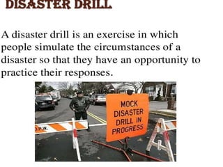 The document discusses forensic aspects of mass disasters including definitions, types of disasters, magnitude of disasters, disaster management plans, and triage. It outlines the investigation process carried out by coordinated forensic teams. Key steps include securing the disaster site, identifying victims, examining clothing and remains for identification purposes including visual, dental, fingerprint, radiological, and DNA analysis. Autopsies aim to determine cause and manner of death and diagnose types of injuries based on the disaster. Effective disaster response requires preparation, training, and updating plans on an ongoing basis.