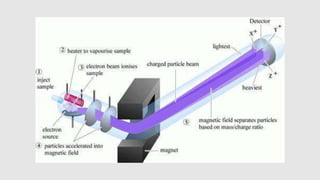 Mass spectrometry is an instrumental technique used to provide qualitative and quantitative information by ionizing molecules and separating them based on their mass-to-charge ratio. The document details the process of mass fragmentation, the rules governing fragmentation, and different modes of fragmentation including homolytic and heterolytic cleavage, as well as rearrangement reactions. It also outlines applications of mass spectrometry in various fields, including structure elucidation, detection of impurities, and quantitative analysis.