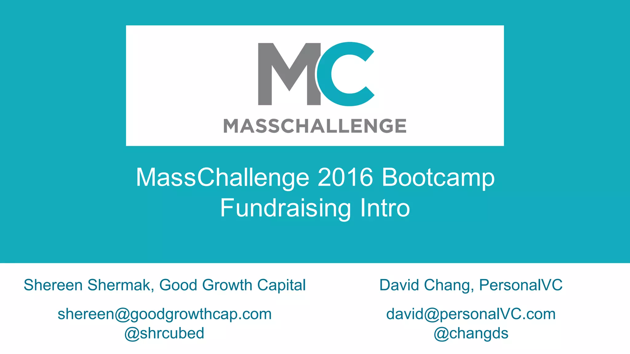 The document provides an overview of a MassChallenge 2016 bootcamp on fundraising basics presented by Shereen Shermak and David Chang. The bootcamp covers topics such as sources of capital, venture capital dynamics, stages of fundraising, preparing to raise a round, targeting investors, socializing an idea, closing a deal, and negotiating valuation. Attendees are encouraged to ask questions.