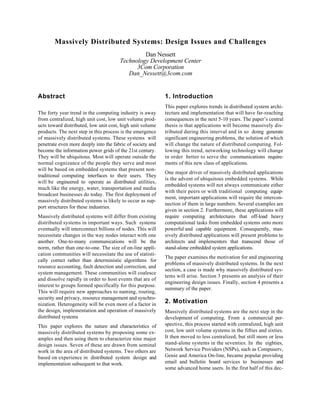 1) Massively distributed systems will interconnect billions of nodes to support applications at a massive scale.
