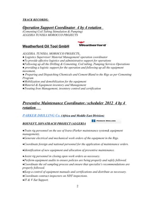 - The document is a resume for Messahli Massinissa, a 29-year-old seeking a responsible job in logistics, oilfield equipment management, or administration.