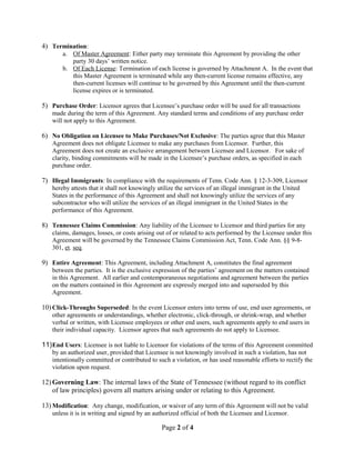 This agreement establishes a master agreement between a licensor and The University of Tennessee for licensing digital content. It allows all University sites, including campuses, institutes, and administration, to place purchase orders under the agreement. The agreement details terms such as the term, termination conditions, applicable laws, authorized users, and usage rights granted for each license. It seeks to govern all transactions between the parties during the term of the agreement.