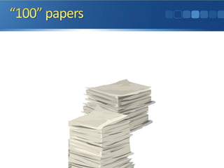 This document provides guidance on academic writing and the research process. It discusses topics like choosing publication venues, writing introductions and conclusions, citing related work, and responding to reviews. The document emphasizes rigor, avoiding informal language, and focusing on the most important ideas. Overall, it aims to help readers improve the quality and impact of their research publications.