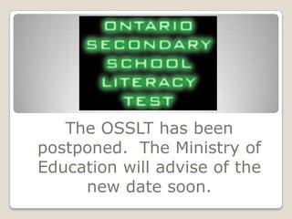 - The postponement of the OSSLT and information about an upcoming parenting workshop on dealing with teen emotions.