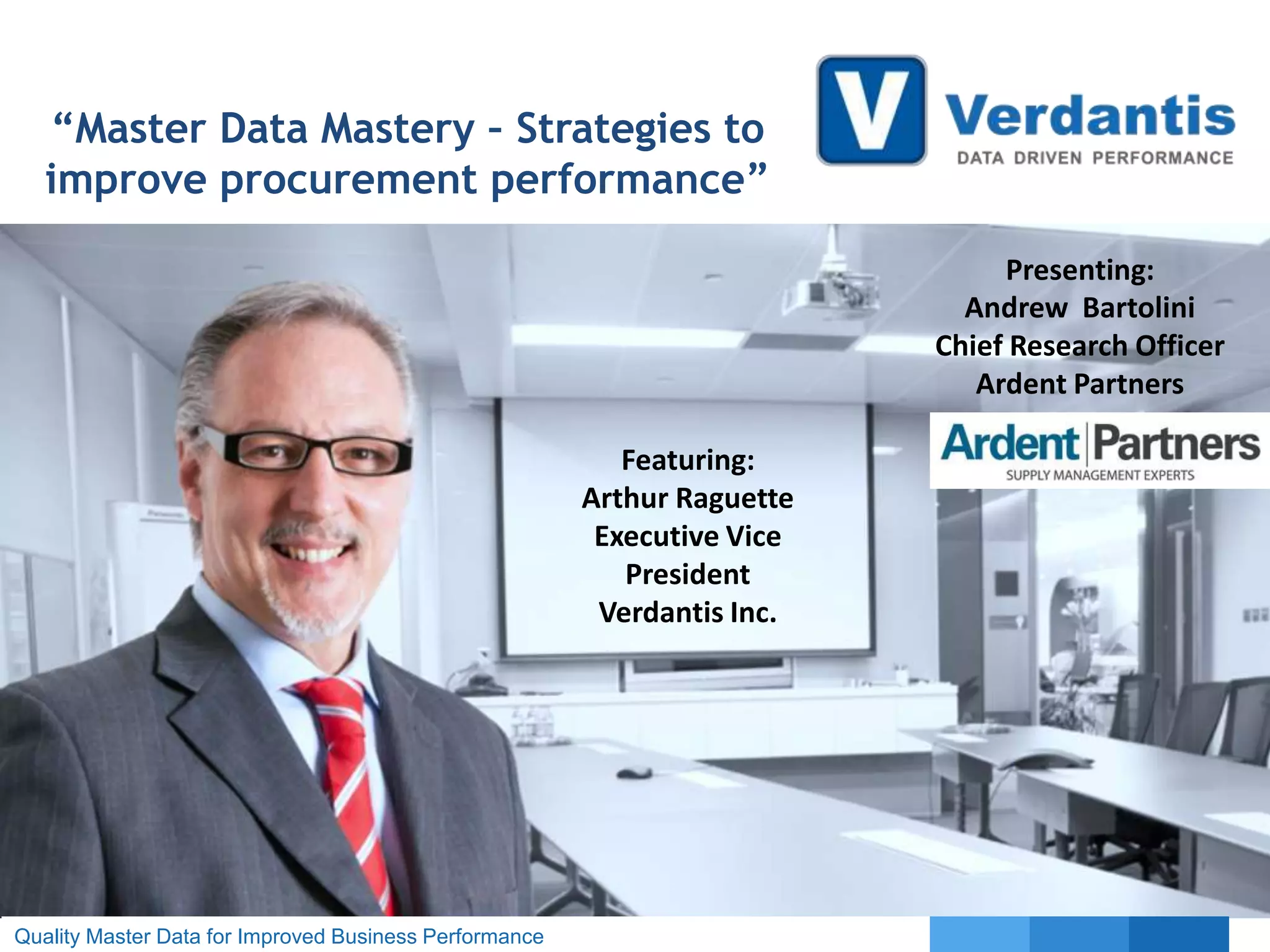 The document discusses master data management (MDM) strategies to enhance procurement performance, emphasizing the importance of accurate and clean master data for effective business operations. It describes the challenges related to data management, outlines best practices for MDM implementation, and provides recommendations for procurement leaders to integrate MDM into their processes. The presentation highlights the significant impact of MDM on working capital, savings, and overall risk management in a data-driven world.