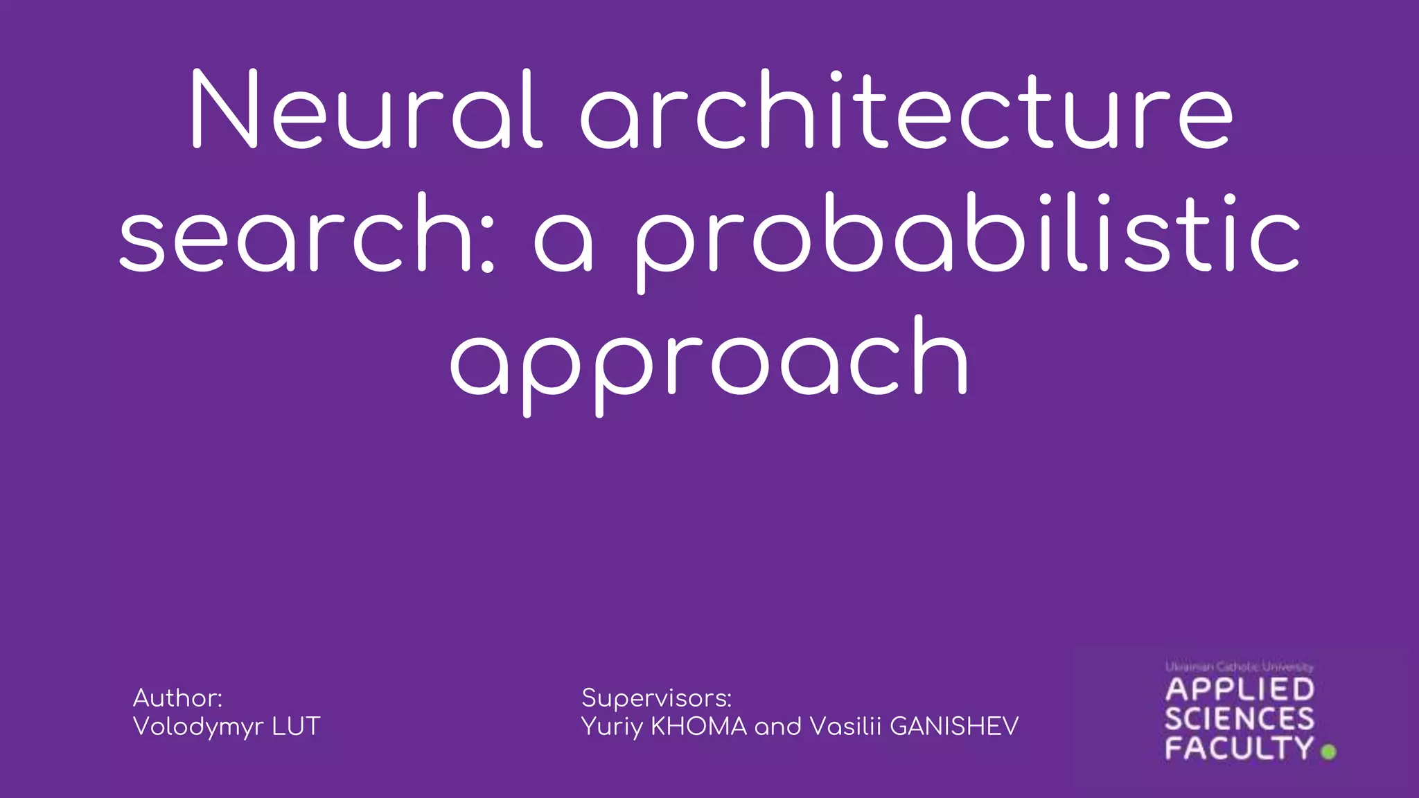 This document discusses a probabilistic approach to neural architecture search (NAS) using reinforcement learning methods to optimize model architectures. It details the methodology, including the use of Gaussian distributions for uncertainty measurement and the results of various algorithms on CIFAR datasets, highlighting the effectiveness of Gaussian modifications. The findings indicate that while the approach yields better architectures, it suffers from overfitting in small action spaces, necessitating consideration of additional methods.