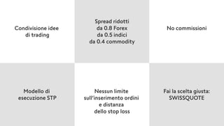Documentul analizează platformele de trading MetaTrader disponibile pe site-ul Swissquote. Se discută caracteristicile și funcționalitățile acestor platforme. Informațiile includ detalii despre avantajele utilizării MetaTrader pentru tranzacționare.