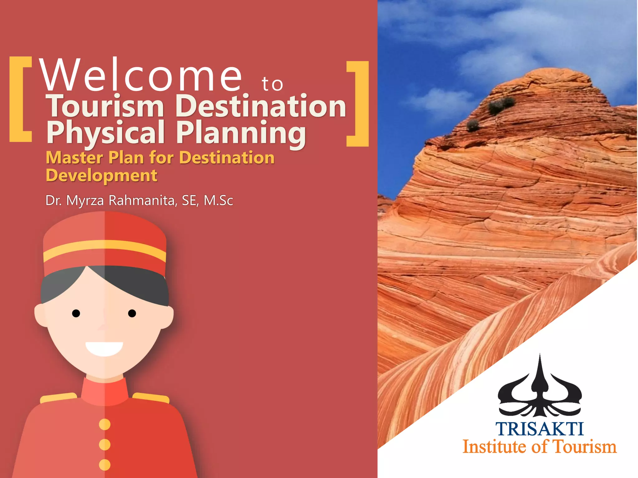 This document provides an overview of the key considerations for developing a physical planning master plan for a tourism destination. It outlines the various area characteristics that should be mapped, including location, natural environment, topography, wildlife, coastal/marine areas, geology, ecological systems, natural resources, historical influences, sociocultural and economic patterns, land use and settlement patterns, environmental quality, tourist markets, existing tourist facilities and services, and transportation and other infrastructure. The goal is to understand the physical, natural, and socioeconomic attributes of the area to inform dividing developable and undevelopable land and sustainable destination development.