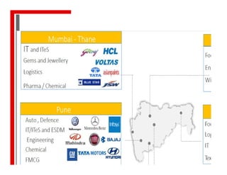 This document provides information on industrial incentive schemes offered by the state governments of Maharashtra and Gujarat. It summarizes the key industrial policies, eligibility criteria, classification of areas, incentives provided like capital subsidy, interest subsidy, SGST refund etc. under the schemes. The Maharashtra section covers the industrial policy 2019, women entrepreneur policy and textile policy. The Gujarat section discusses the industrial policy 2016 and schemes for industries. Eligible investments, timelines and quantum of incentives are also outlined.