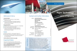 This document provides information about the Master of Engineering in Paper Technology program at the Munich University of Applied Sciences. It outlines the following: