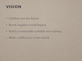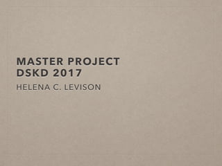 Helena C. Levison's master project aims to build a scalable tech startup that empowers foster parents through a community platform. The problem is that foster parents experience frustration when working with traumatized children. The concept is a community platform that allows foster parents, agencies, and social workers to connect. Research will involve interviews with startups and using design thinking tools to map out pain points in the current system.