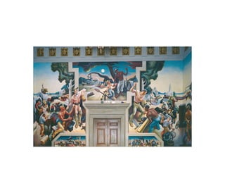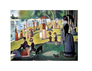This document provides an overview of major artworks created between 1805-1988 from European and American artists such as Napoleon, Ingres, Goya, Delacroix, Constable, Turner, Manet, Monet, Van Gogh, Picasso, Matisse, Duchamp, Pollock, Rothko, and Warhol. The artworks span a variety of mediums including painting, sculpture, photography, and installation art and represent major artistic movements like Neoclassicism, Romanticism, Realism, Impressionism, Post-Impressionism, Fauvism, Cubism, Dadaism, Surrealism, Abstract Expressionism, Pop Art, Minimalism, and Conceptualism