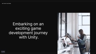 The document outlines a course focused on game development using the Unity game engine, covering essential topics such as graphics rendering, physics simulation, and scripting. It highlights the importance of understanding game mechanics, visual effects, and testing for creating immersive gaming experiences. Additionally, the course includes strategies for launching a game, marketing, and seeking collaboration with other developers.