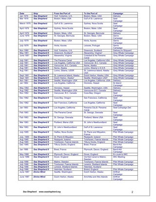 Captain Paul Watson has over 40 years of experience at sea, including over 20 years as the Master and Commander of Sea Shepherd Conservation Society voyages. He has commanded 201 voyages for Sea Shepherd since 1979, protecting marine wildlife without any injuries to his crew. The document provides a complete list of Sea Shepherd voyages from 1979 to 2007, including locations traveled to and campaigns supported. It establishes Captain Watson as the most experienced conservation sea captain due to his leadership of Sea Shepherd's 228 total voyages over nearly 30 years.