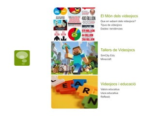 Apunts de la masterclass sobre Videojocs i Educació impartida al juny dels 2014 a la FPCEE Blanquerna. La master inclou també dos tallers entorn el videojoc SimCity versió educativa (Jordi Elies) i el fenònem Minecraft (Xavier Belanche).