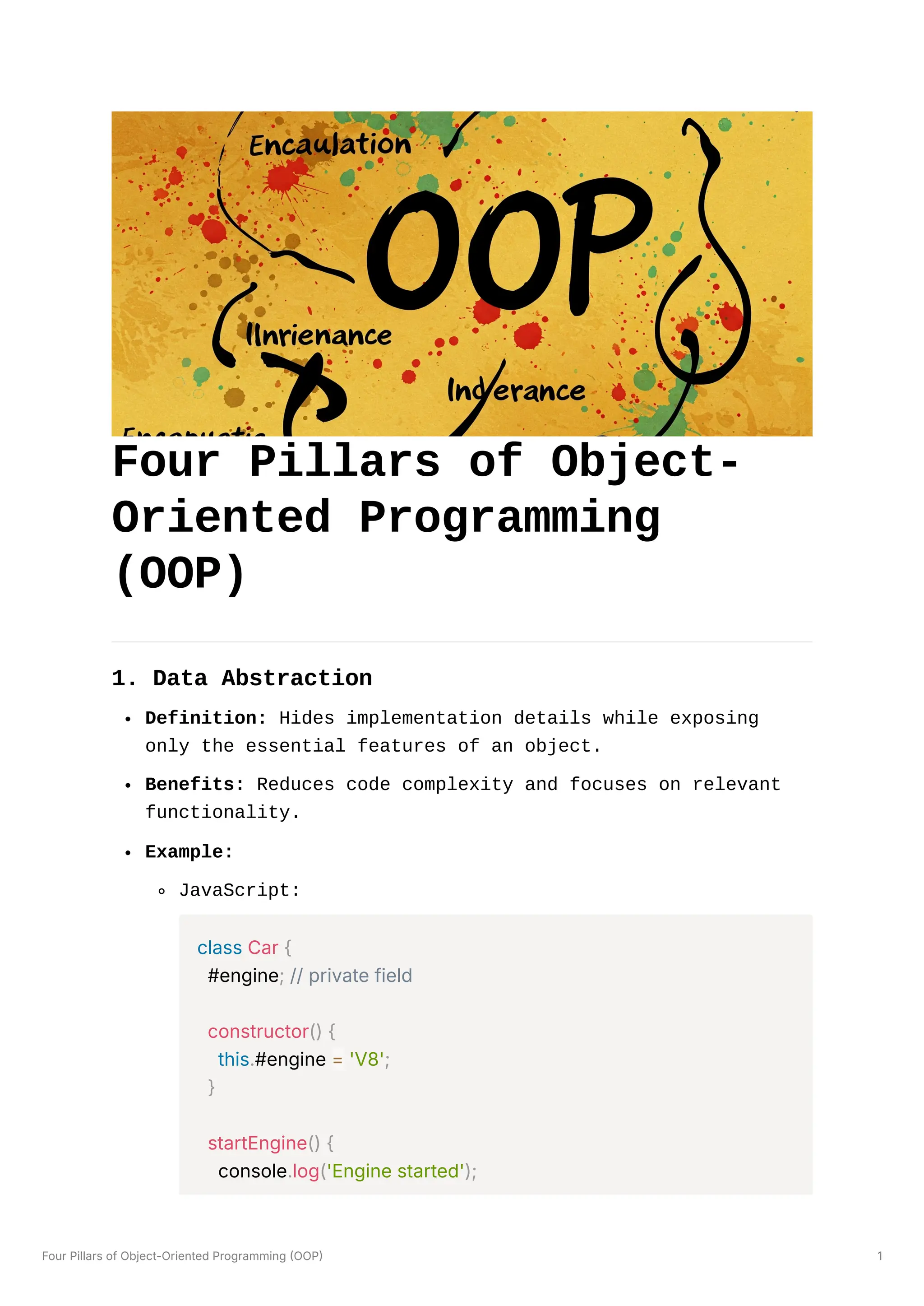Dive into the essential concepts of Object-Oriented Programming (OOP) with a detailed explanation of its four key pillars: Encapsulation, Inheritance, Polymorphism, and Abstraction. Understand how these principles contribute to robust, maintainable, and scalable software development.