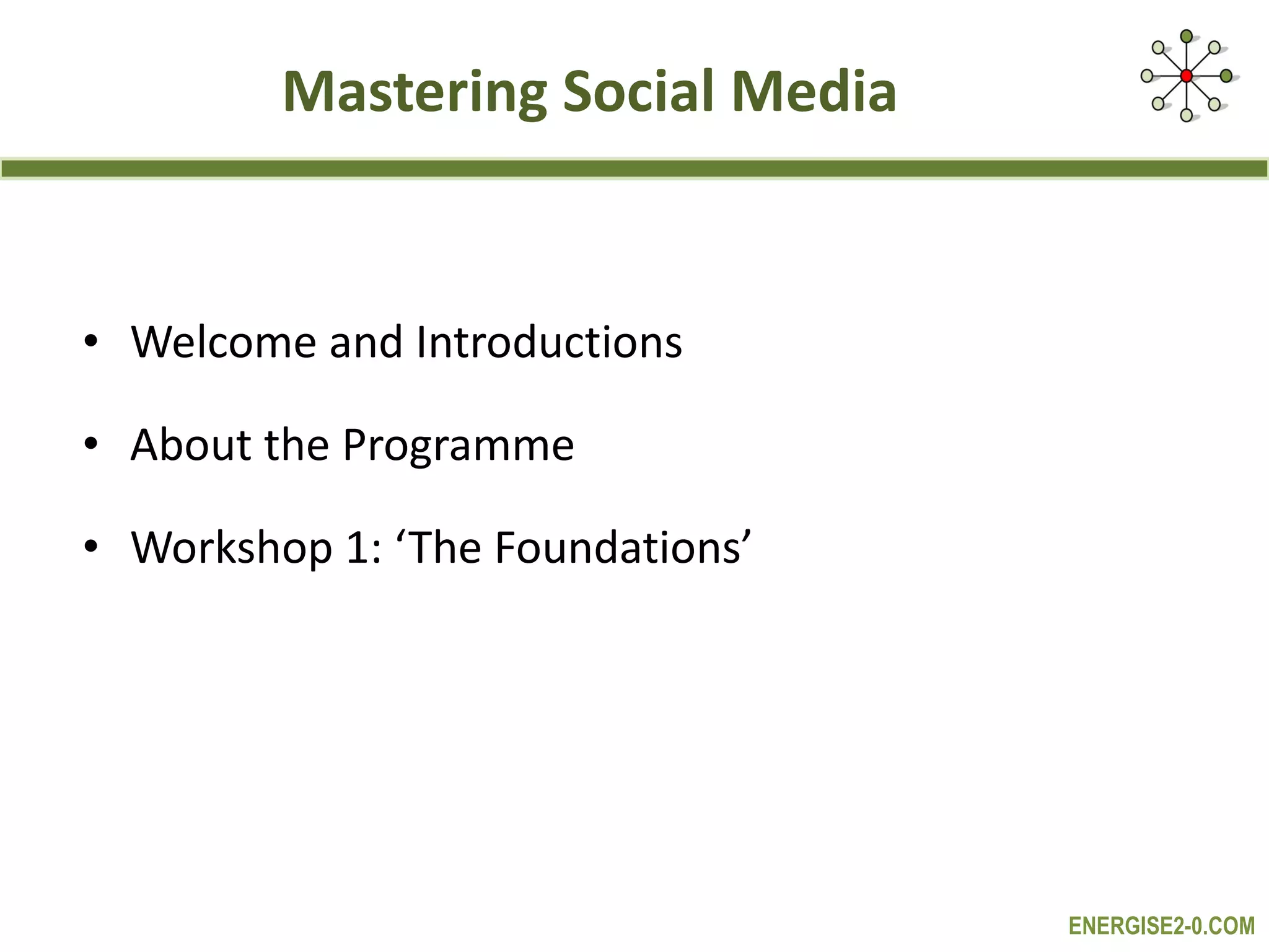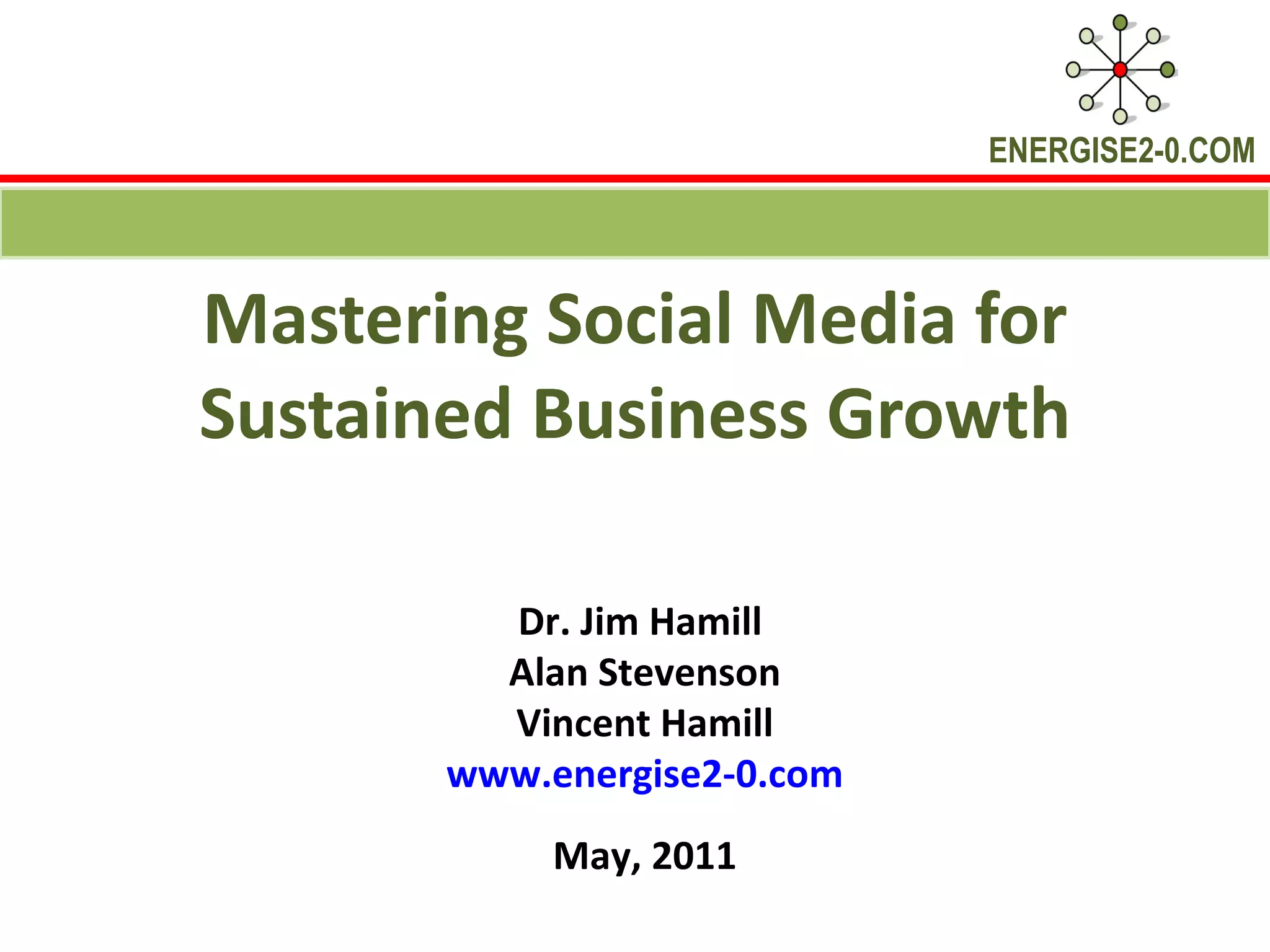 The document provides an overview of a workshop on mastering social media for business growth. It discusses the opportunities social media presents, such as increased customer insight, brand awareness, and sales. It also notes that while interest is growing, many businesses lack clear social media strategies and objectives. The workshop aims to help businesses develop successful social media strategies and determine how to measure their return on investment.