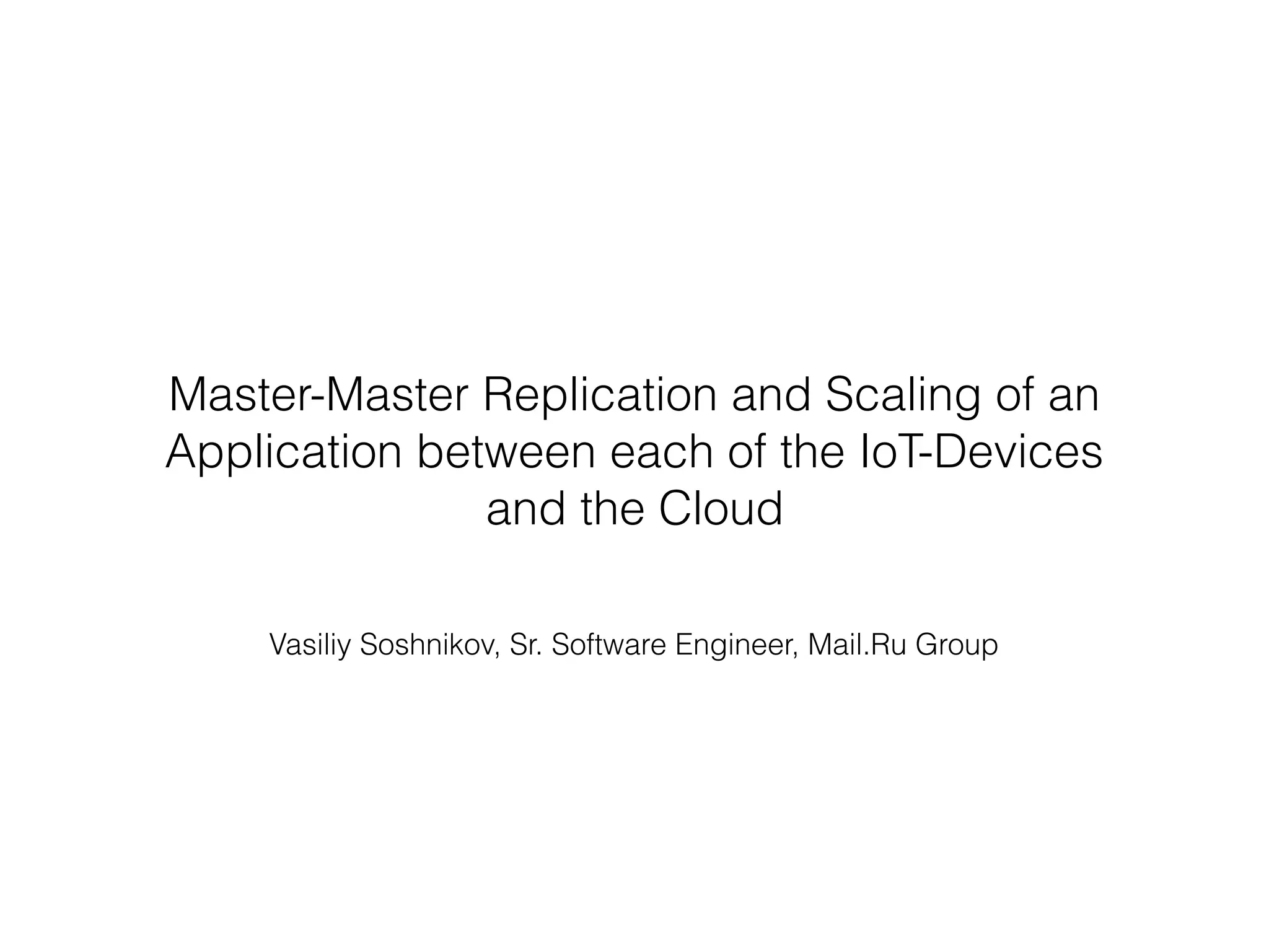 The document discusses the implementation of a master-master replication system for syncing data between IoT devices and the cloud, highlighting user requirements and applicable protocols. It details challenges encountered with database choices, specifically with Tarantool, and the use of 6lbr-gateway for creating a mesh network. Additionally, it provides references and contact information for further inquiries.
