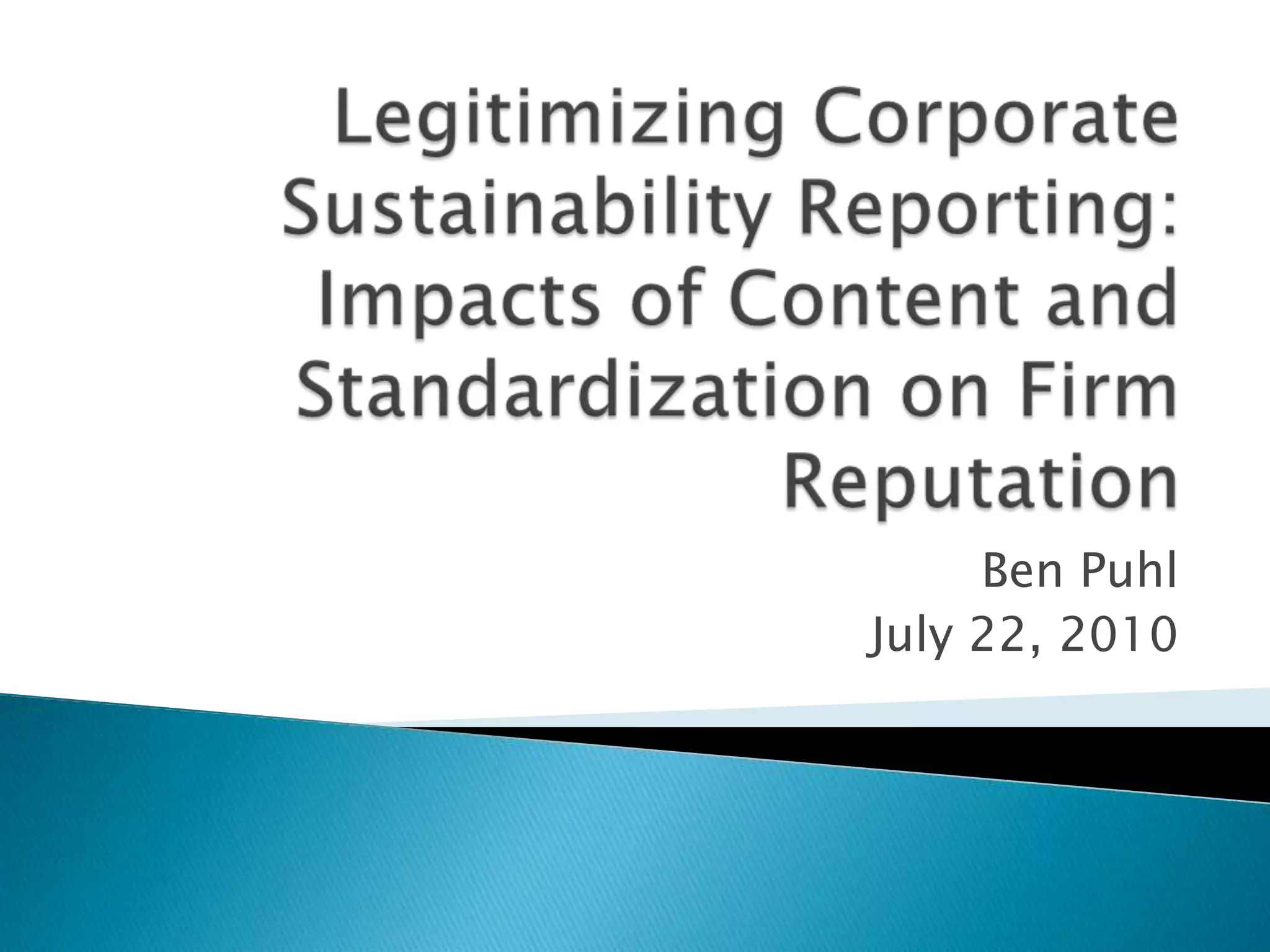 This document analyzes the impacts of sustainability report content and standardization on firm reputation. It finds that: