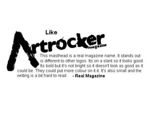 This document discusses different newspaper mastheads, providing opinions on what is liked and disliked about various designs. Pros and cons are given for different masthead options.
