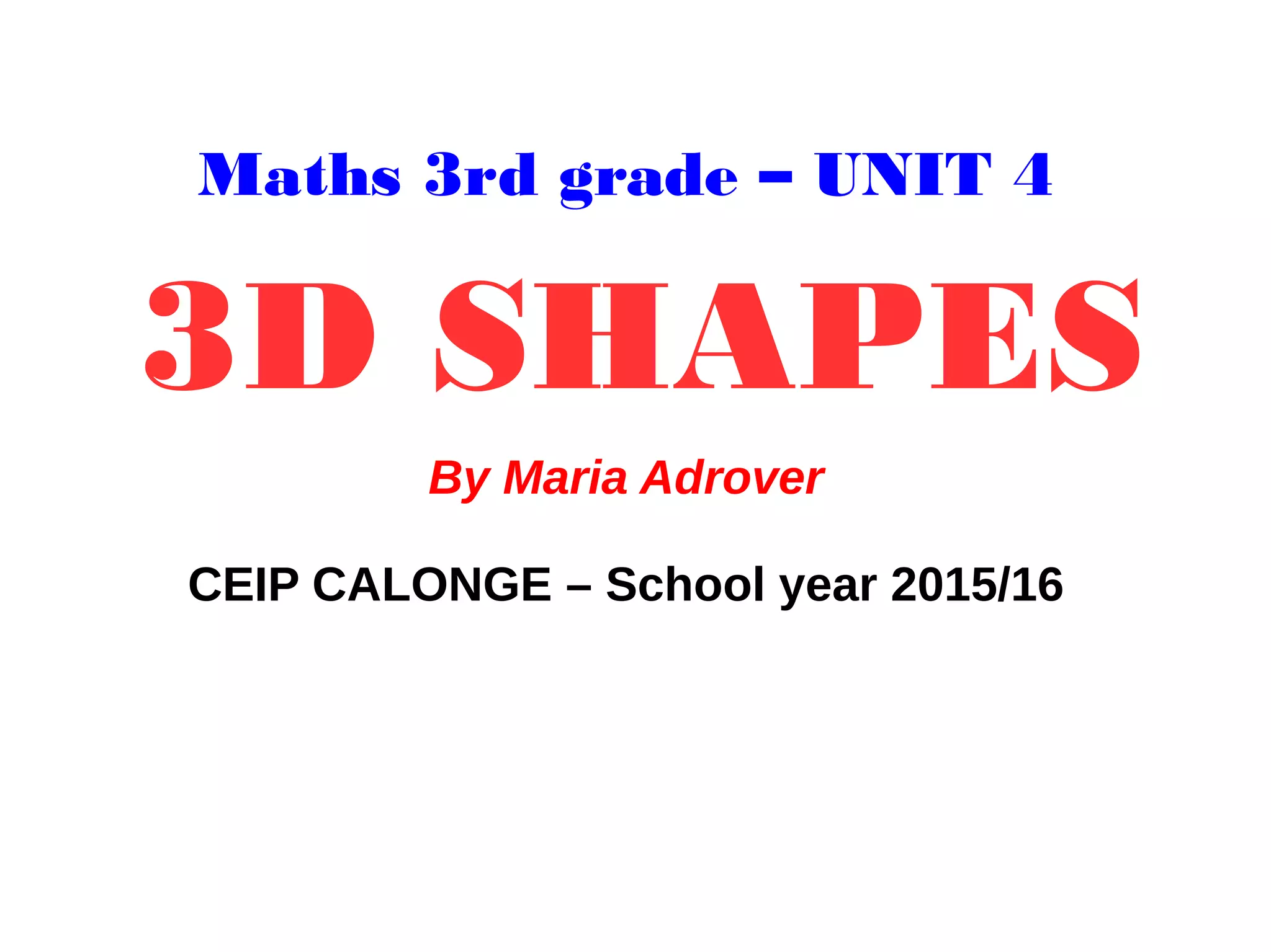 This 3rd grade math unit covers 3D shapes including prisms, pyramids, and curved 3D shapes. Prisms are defined and their types are listed, with the cube identified as a special prism with equal square faces and no bases. Pyramids are also introduced and their types noted. Curved 3D shapes are the final topic covered in the unit.