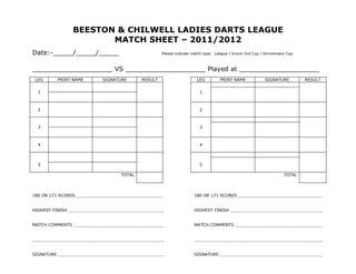 Double out finishing chart DOC
