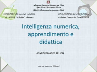 Il documento esplora l'importanza dell'intelligenza numerica e delle abilità matematiche nel contesto educativo, evidenziando le difficoltà degli studenti e le cause sottostanti, come la discalculia. Viene discusso come il potenziamento delle capacità cognitive e il supporto nell'apprendimento attivo siano fondamentali per sviluppare competenze matematiche efficaci sin dalla prima infanzia. Infine, si sottolinea il ruolo critico degli insegnanti nell'identificare e affrontare gli errori per ottimizzare l'apprendimento matematico.