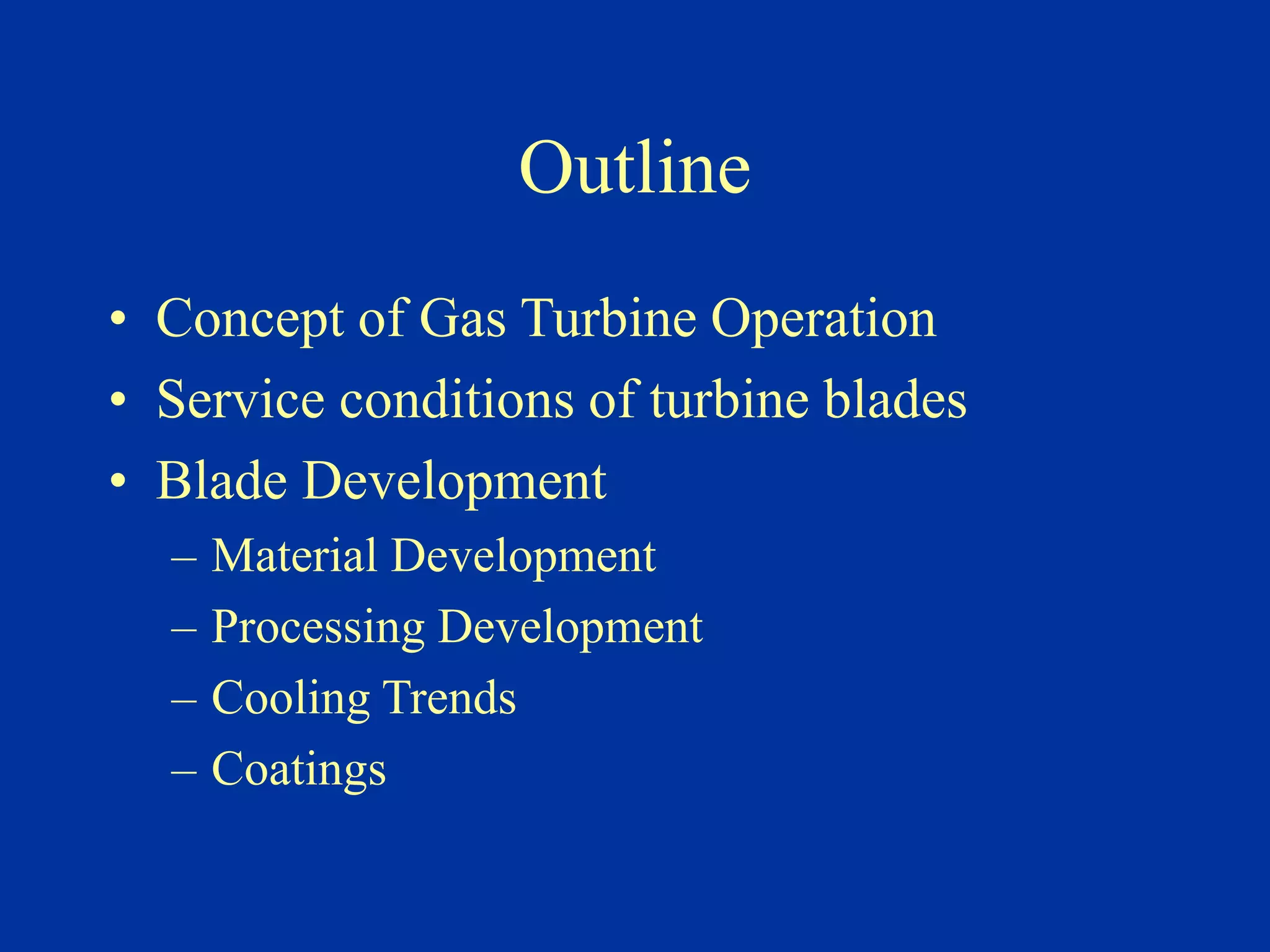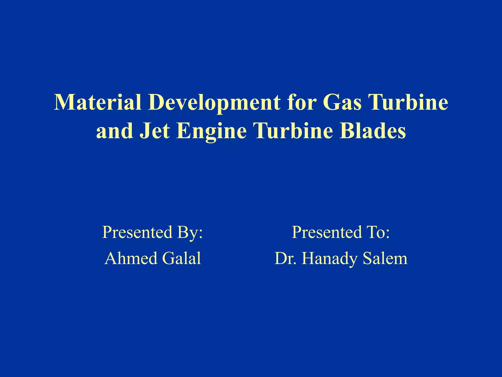 The document summarizes the development of materials for gas turbine and jet engine turbine blades. It discusses how earlier blades were made of steel but nickel-based superalloys were introduced in the 1940s as they had better high-temperature capabilities. It describes how wrought alloys were initially used but cast alloys became popular with advances in casting. It also outlines trends in processing like investment casting and directional solidification, and how cooling and coating technologies improved to allow higher firing temperatures.
