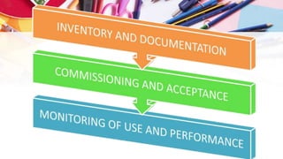 This document discusses various concepts related to material management. It defines material management as planning, organizing, and controlling the flow of materials from initial purchase through operations to distribution. It describes key functions like planning, procurement, inventory management, and storage. Different inventory models are explained including EOQ and ABC analysis for classification and control of inventory. Material accounting systems and roles of nurses in material management are also summarized.