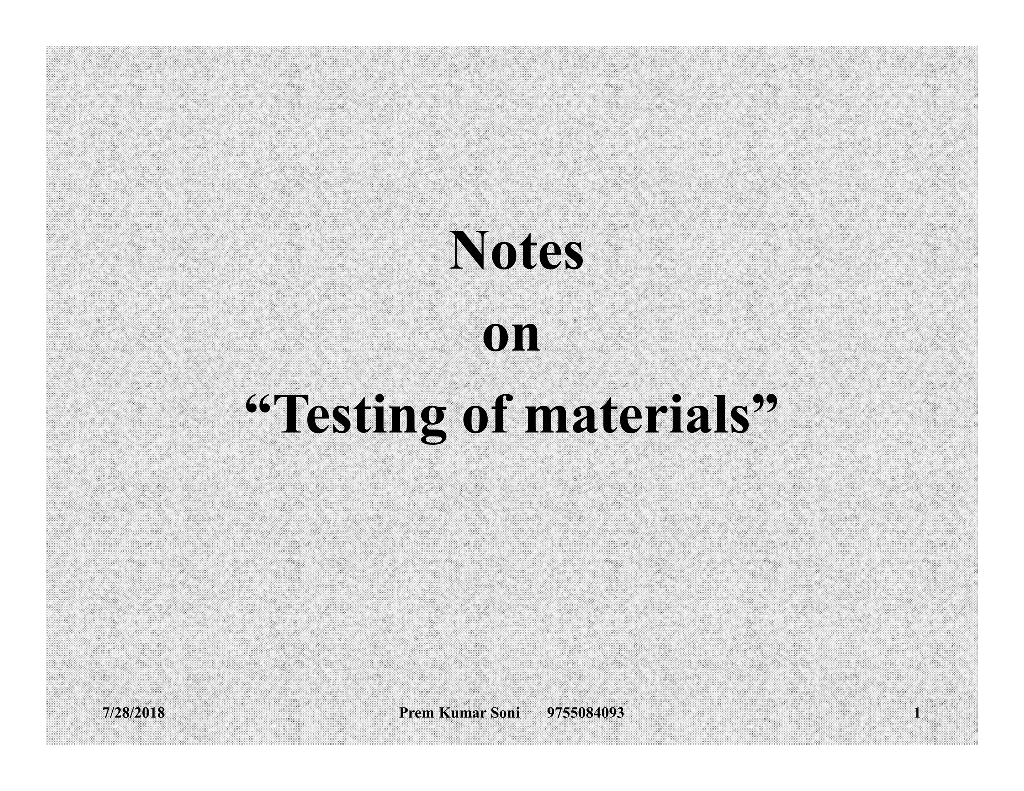 This document discusses various methods for testing materials, including destructive and non-destructive testing. It provides details on hardness testing methods like Rockwell and Brinell, as well as impact testing methods like Izod and Charpy. Specifically, it compares the Izod and Charpy impact testing methods, noting that Izod places the test material vertically and has a single notch type, while Charpy places the material horizontally and uses either a V-notch or U-notch. The document also briefly outlines tensile testing.