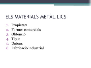 ELS MATERIALS METÀL.LICS.Propietats