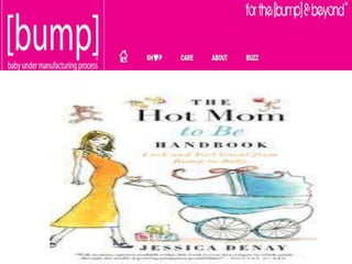 BumpBabies is a website and social media account focused on pregnancy and motherhood. It has a large Twitter and Pinterest following where it shares tips, photos and advice for expecting and new mothers. The website bumpbabies.com provides additional resources on topics from fertility and childbirth to parenting infants and toddlers.