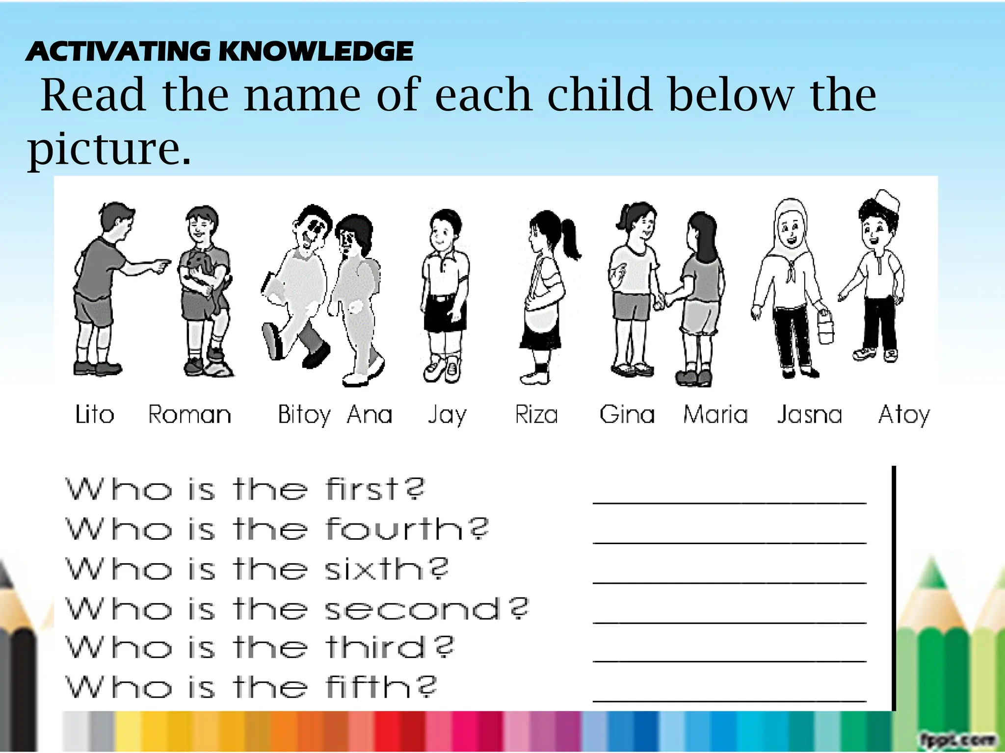 patlang ng tamang sagot. Isulat ang inyong sagot sa