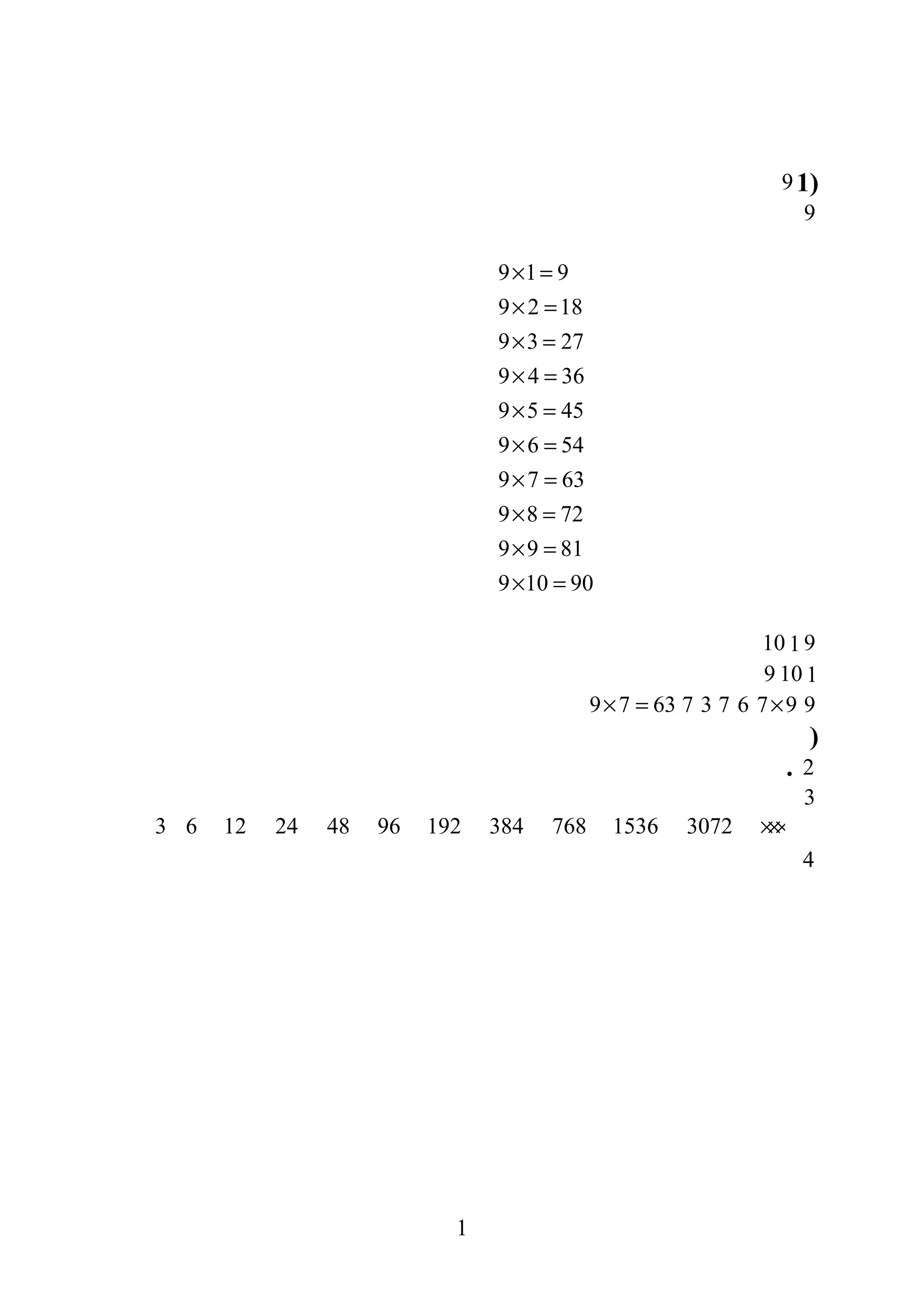 1. The document contains a series of calculations involving addition, subtraction, multiplication and division.