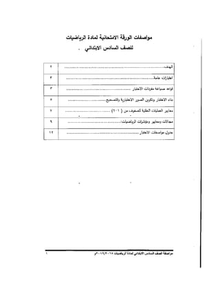مواصفات الورقة الامتحانية لمادة الرياضيات للصف السادس - الفصل الدراسي الأول - للعام الدراسي 2018 /2019 م