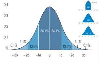 - It discusses topics like mean, median, mode, range, standard deviation, normal distribution, and the empirical rule.