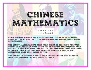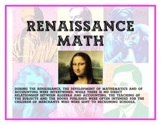 Mathematics developed significantly during the Medieval period. Leonardo of Pisa, also known as Fibonacci, wrote Liber Abaci in the early 1200s which introduced Hindu-Arabic numerals to Europe for the first time. This book described how to perform calculations using the new numerals.