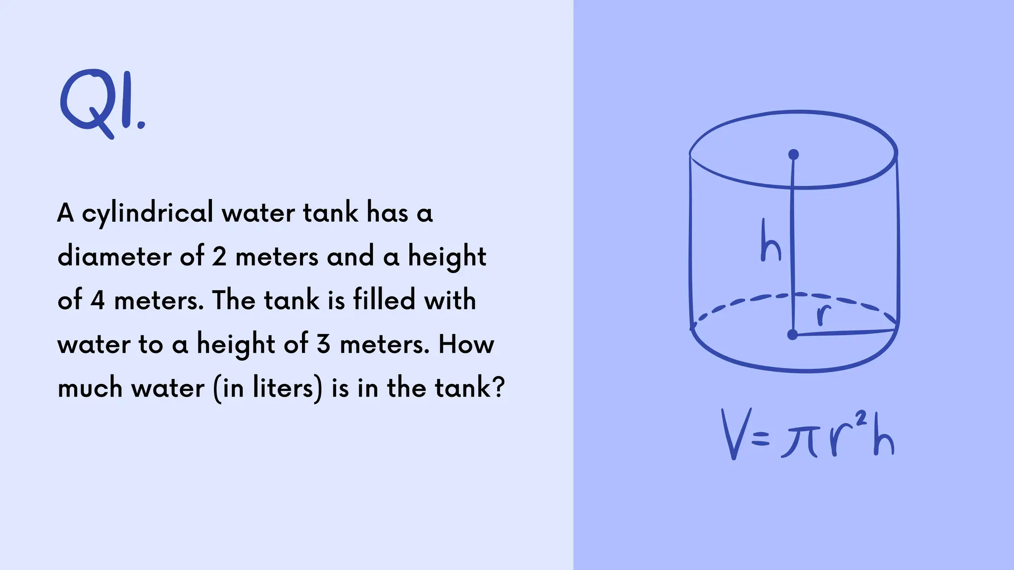 The document presents a series of math word problems involving area and volume calculations. Key problems include determining the volume of water in a cylindrical tank, calculating the volume of a cube, finding the surface area needed for wrapping a rectangular box, and determining the area required for laying turf in a backyard. The document also provides step-by-step solutions for each problem.