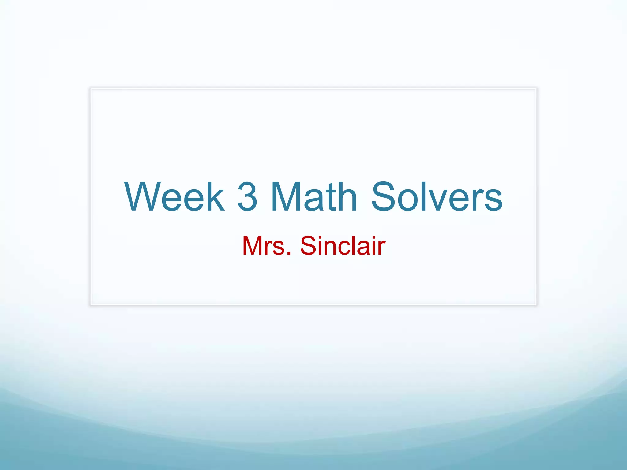 This document contains 9 math word problems assigned for week 3 by Mrs. Sinclair. The problems involve topics like number of items eaten, money amounts, distances traveled, and calculating change or remaining amounts. Students are asked to determine totals, differences, and values based on information provided in each short problem.
