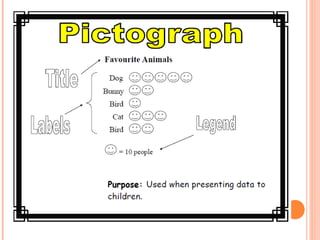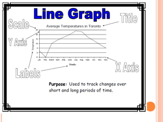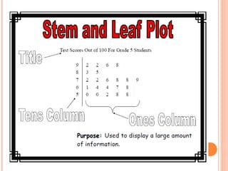 The document outlines 7 stations for students to complete graphing and data analysis activities. At station 1, students survey classmates' favorite days of the week and create a bar graph. Station 2 has students make a double bar graph comparing male and female favorites. Station 3 involves a pictograph of classmates' pet ownership. Station 4 is a line graph of monthly temperature data. Station 5 is a stem-and-leaf plot of a math test scores. Station 6 is a scatter plot comparing student heights and arm spans. Station 7 is a circle graph of time spent on daily activities.