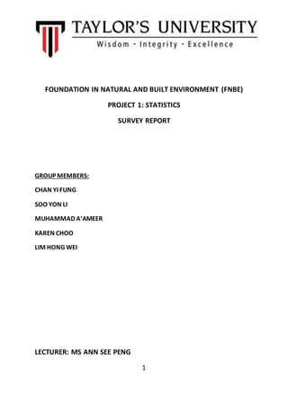 The survey report summarizes data collected from 250 students (125 males, 125 females) regarding their knowledge of HIV. The statistical analysis provides responses to 15 survey questions in a multiple choice format. For each question, the report lists the response options and percentages of males and females who selected each option. It also identifies the mode and provides a short explanation of the correct answer. The objectives of the survey were to identify understanding of HIV among university students and determine if knowledge varied by gender.