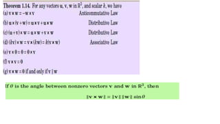 3. The document concludes with an introduction to vectors, including definitions, operations like addition and subtraction, unit vectors, and applications of vectors such as the dot product and cross product.