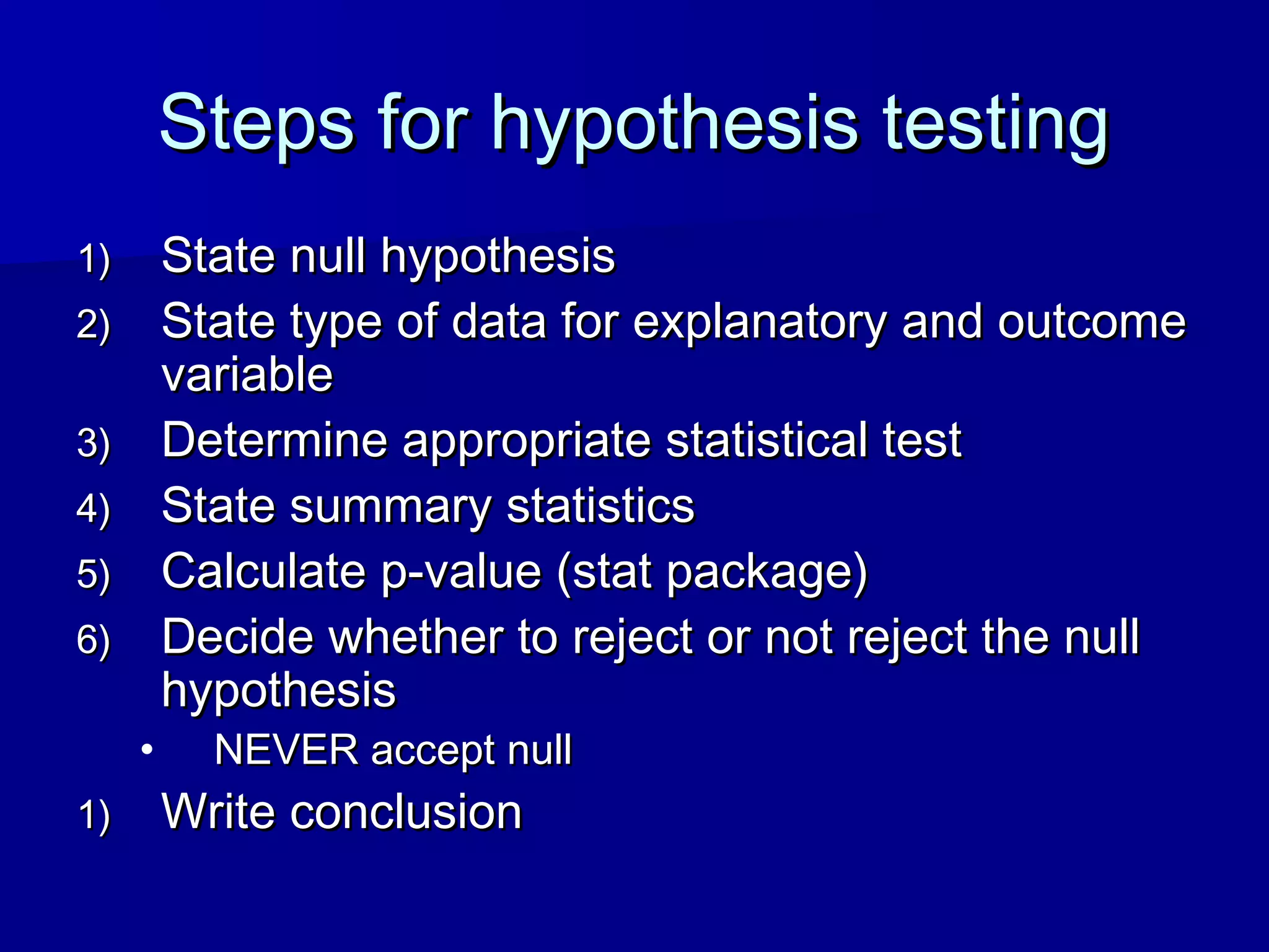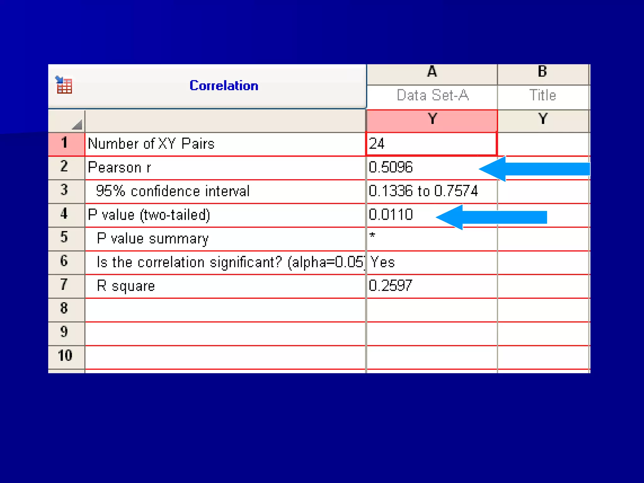 This document discusses hypothesis testing for correlation between two continuous variables. It defines correlation, outlines the steps for a hypothesis test comparing correlation to zero, and provides the technical details of calculating Pearson's correlation coefficient. A key point is that the distribution of the test statistic is t-distributed, allowing assessment of statistical significance through the p-value. The goal of the example analysis is to determine if there is a linear relationship between IL-10 and IL-6 expression levels in patients.